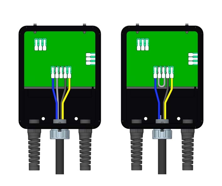 Cargador monofásico de 7,4 kW de dos salidas con manguera de 5 m y clavija Tipo2, diseñado para la recarga segura y eficiente de vehículos eléctricos en todo tipo de instalaciones, desde comunidades, viviendas unifamiliares, garajes privados y comunitarios hasta entornos terciarios como oficinas, hoteles, hospitales, escuelas, centros comerciales, etc.
