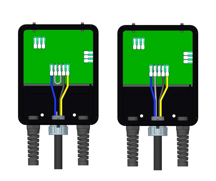 Cargador monofásico de 7,4 kW de dos salidas con manguera de 10 m y clavija Tipo2, diseñado para la recarga segura y eficiente de vehículos eléctricos en todo tipo de instalaciones, desde comunidades, viviendas unifamiliares, garajes privados y comunitarios hasta entornos terciarios como oficinas, hoteles, hospitales, escuelas, centros comerciales, etc.